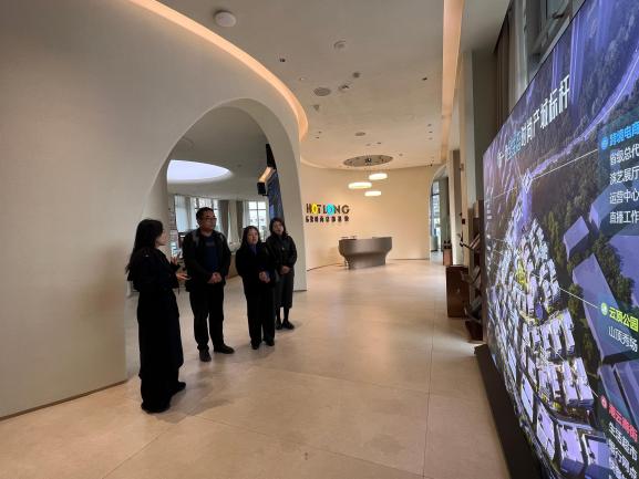 在后浪服装产业园里,通过项目负责人介绍,了解到园区旨在构建开放共享的生态圈,帮助新兴品牌降低运营成本、快速对接市场,为学院在培养学生品牌策划与运营能力、开展创新创业教育方面提供了宝贵的经验。