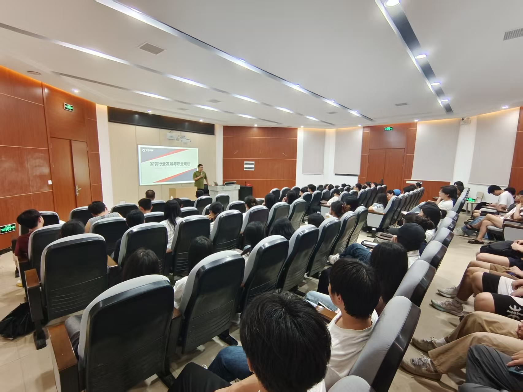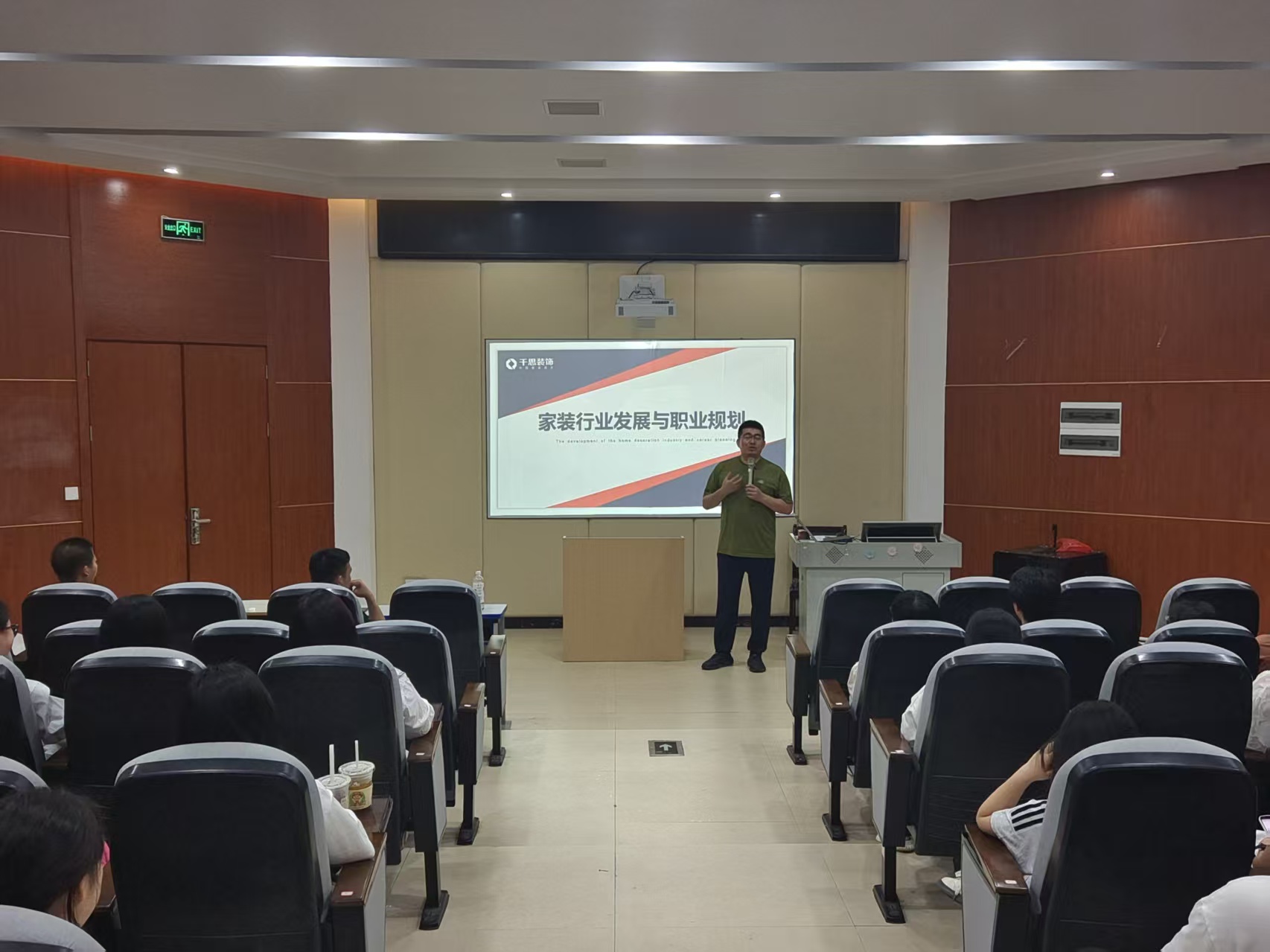 2025年5月21日晚,民族艺术学院邀请千思装饰湘西分公司总经理、集团首席人力资源官张庭老师,为2026届室内艺术设计专业93名同学开展了一场主题为“家装行业发展与职业规划”的生涯讲座。
