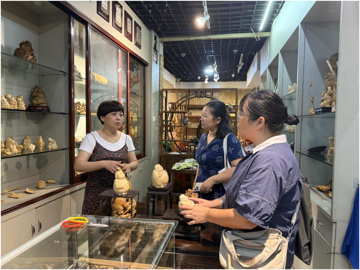 8 月 15 日,调研团队前往东阳木雕城,聚焦国家级非物质文化遗产 —— 东阳木雕的传承与发展。在卢培纲金华市非遗传承工作室,团队了解到其采用传统师徒制传承木雕技艺,学徒需经过三年系统学习与实践方可出师,这种模式虽能保障技艺的完整性与专业性,但对学徒耐心和毅力要求极高。然而,工作室当前面临诸多困境:一方面,因学习周期长、初期收入低,年轻人难以坚持,工作室已停止招收学生,技艺传承面临断层风险;另一方面,木雕产品偏向收藏与装饰属性,非生活刚需品,价格较高,客户群体集中在经济实力较强人群,且受疫情影响,市场整体不景气,销量与订单量大幅下滑。不过,工作室积极适应市场变化,借助电商平台,通过视频看图沟通、达成交易后发货的模式,有效节约了运营成本,为传统技艺的市场化探索提供了新思路。